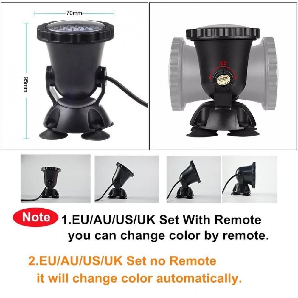 * Submersible lighting kit for ponds and aquariums. * 36 LED bulbs, 7 patterns change every 1-2 seconds. *