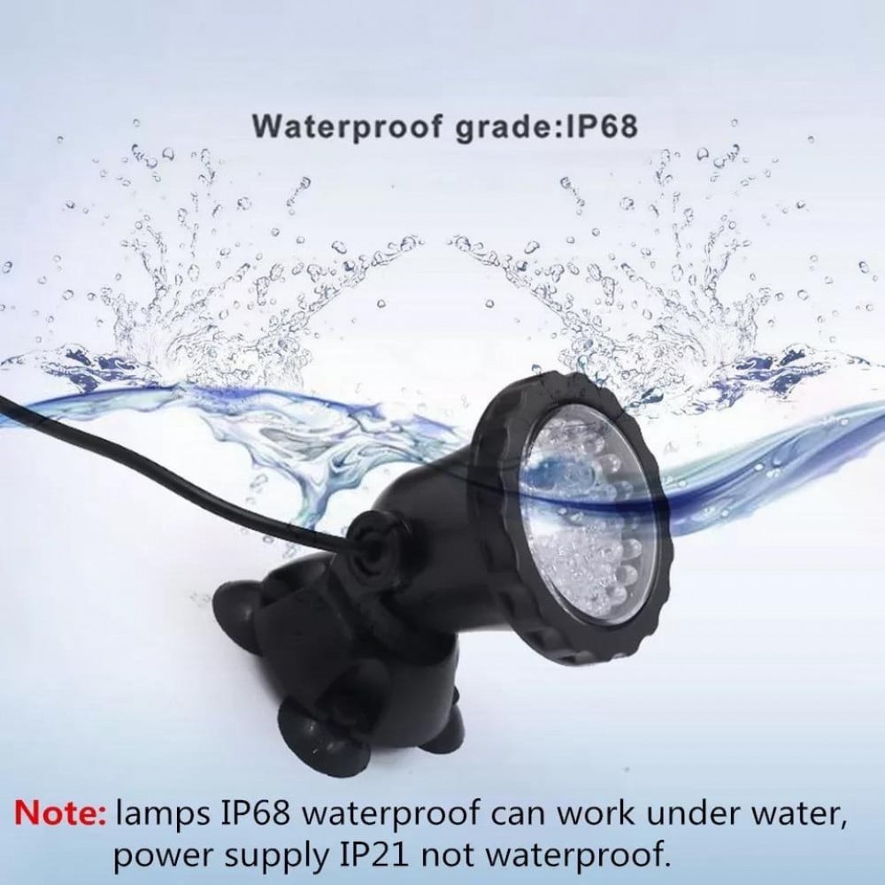 * طقم إضاءة غاطسة للبرك وأحواض السمك المائية. * 36 لمبة LED ، 7 أنماط تتغير كل ثانية إلى ثانيتين. *