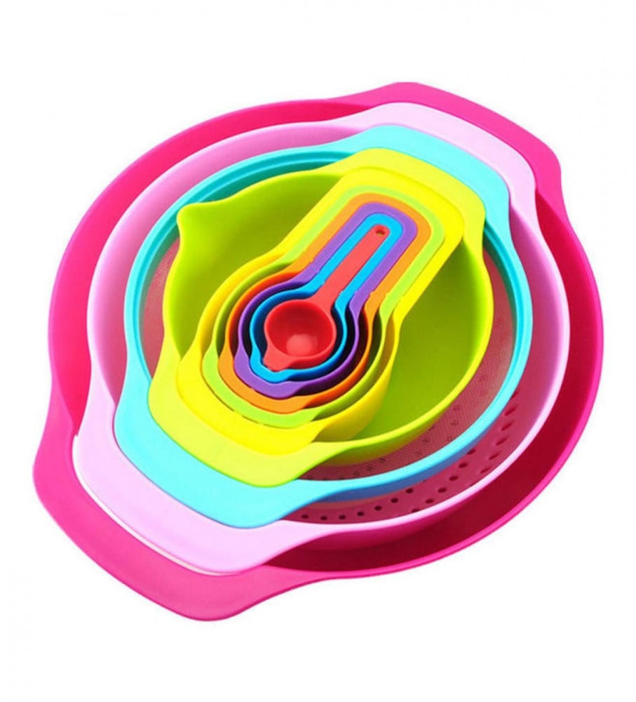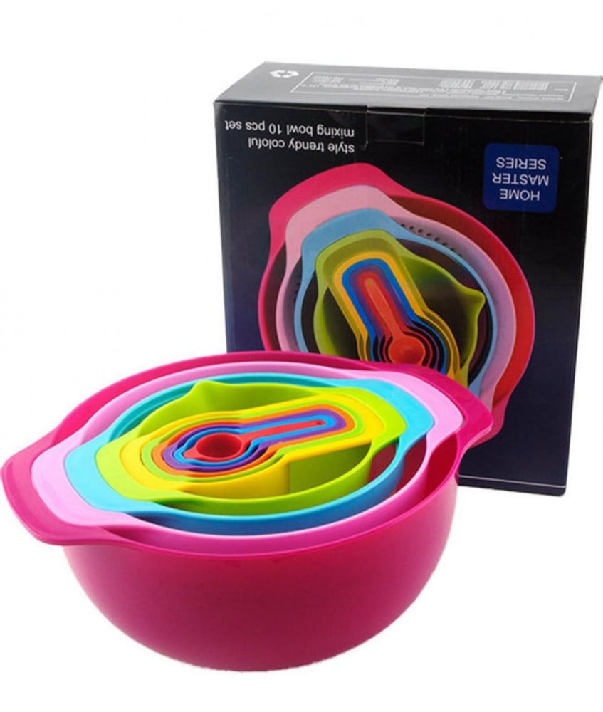طقم أوعية خلط مع أكواب قياس وملاعق مكون من 10 قطع