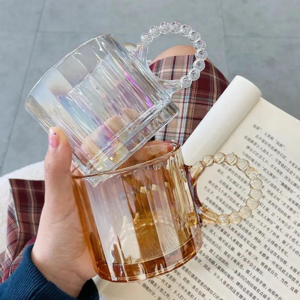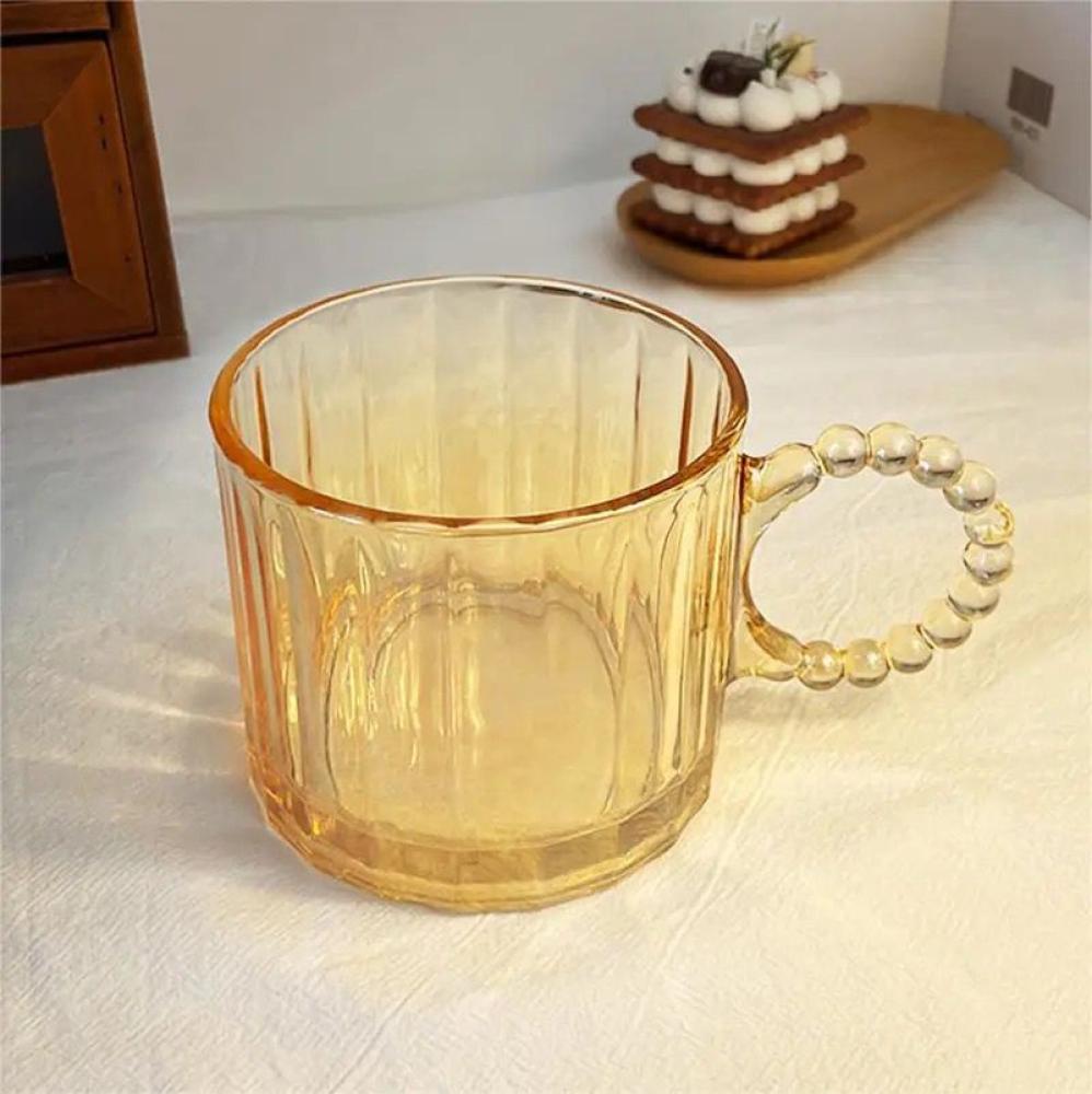كوب شاي جامبو مقوى بمقبض، للقهوة والشاي والحليب والمشروبات الساخنة والباردة مثالي للمنزل والمطاعم - شفاف (عبوة من قطعتين) (متور بلونين : ( أصفر و أبيض )