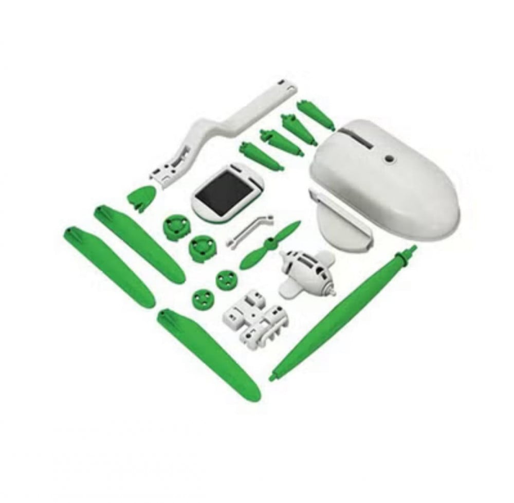 - يمكنك بناء 6 نماذج مختلفة: الطائرة الشمسية الدائرية وطاحونة الطاقة الشمسية والطائرة الشمسية والقارب الشمسي والجرو الشمسي والسيارة الشمسية