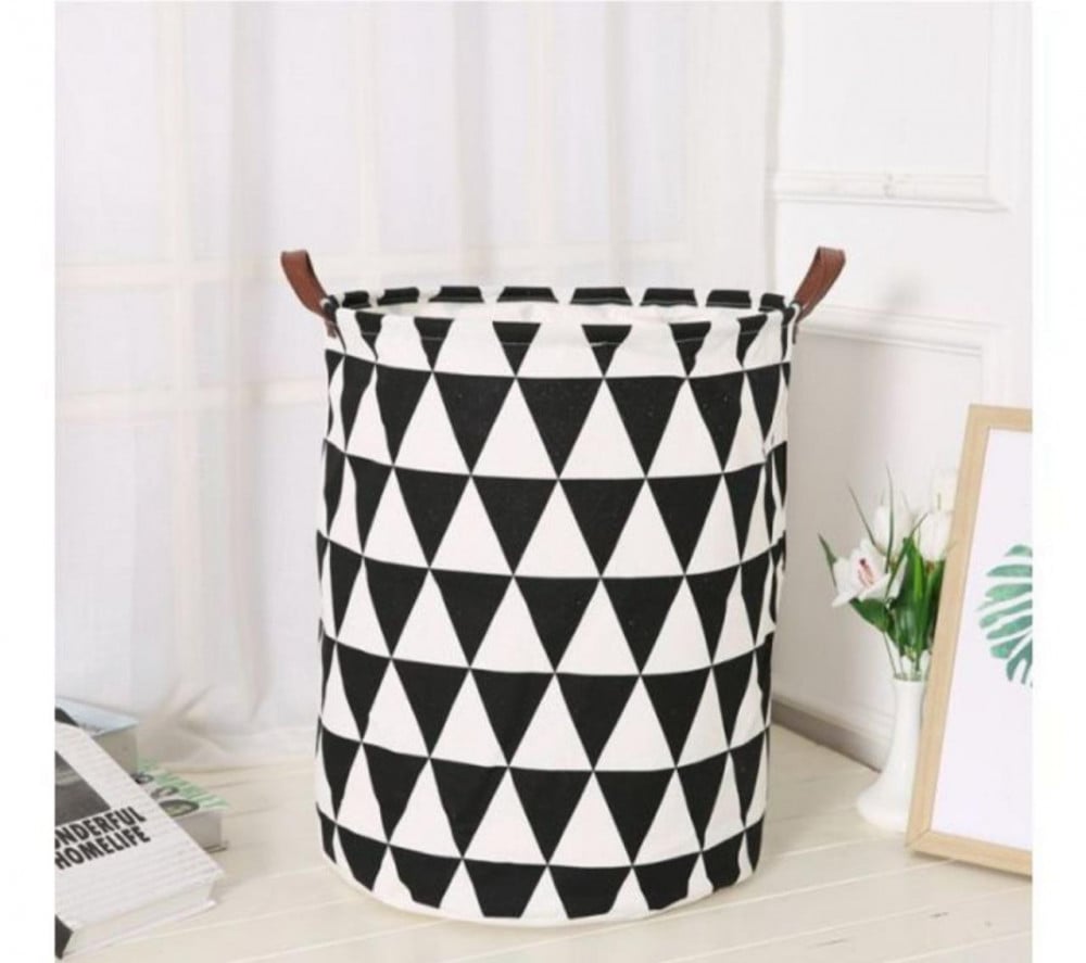 سلة تخزين مزينة بطبعة أسود/ أبيض